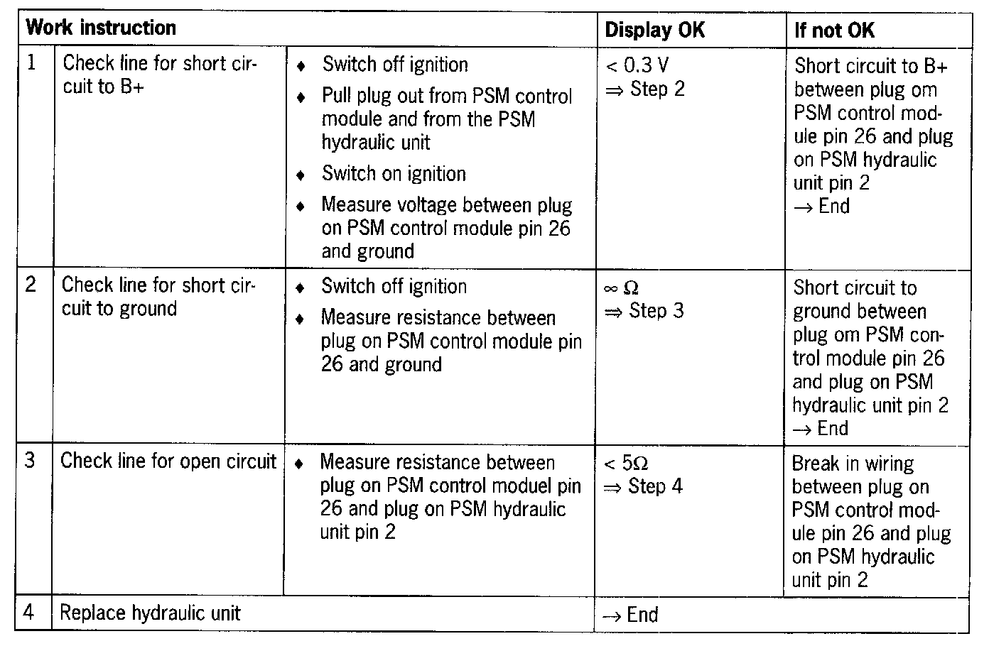 - PSM hydraulic unit faulty