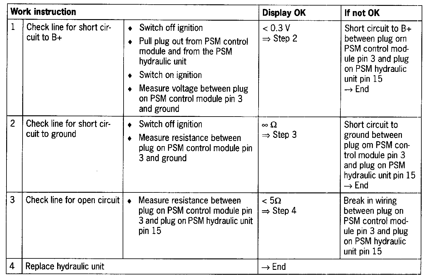 PSM 5.7: Hydraulic unit faulty; PSM 5.3: ABS exhaust valve front left