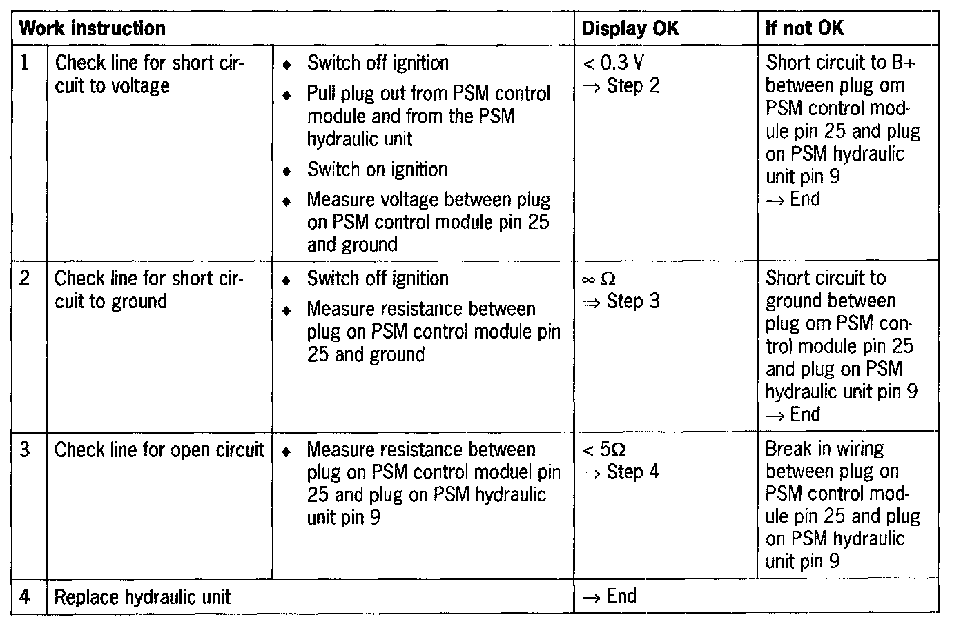 PSM 5.7: Hydraulic unit faulty; PSM 5.3: ABS exhaust valve rear left