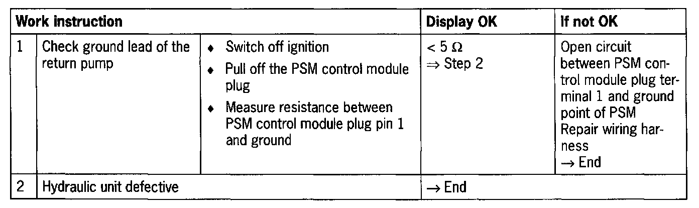 - PSM hydraulic unit faulty