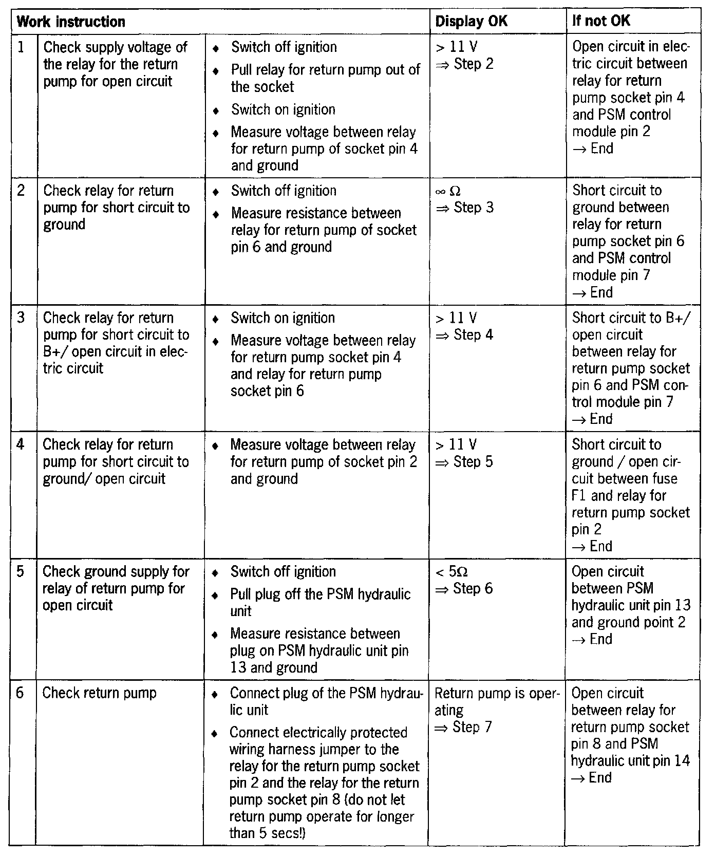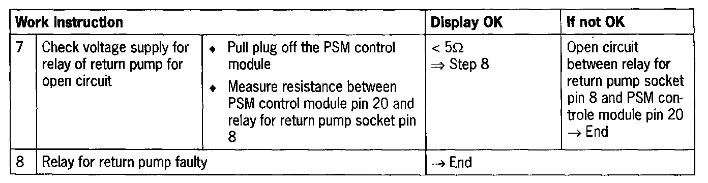 - Return pump voltage and motor relay voltage actual values are evaluated and display implausible values