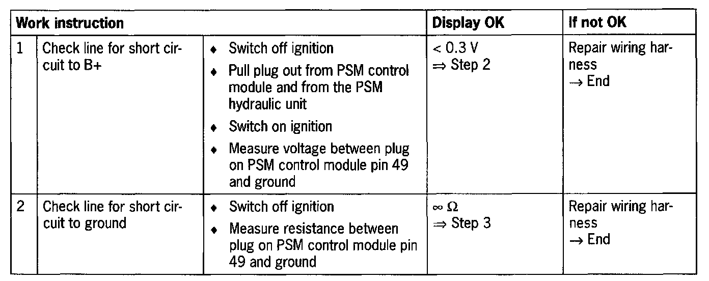 - PSM 5.3 Short circuit to ground/voltage or open circuit in circuit to control module terminals 49