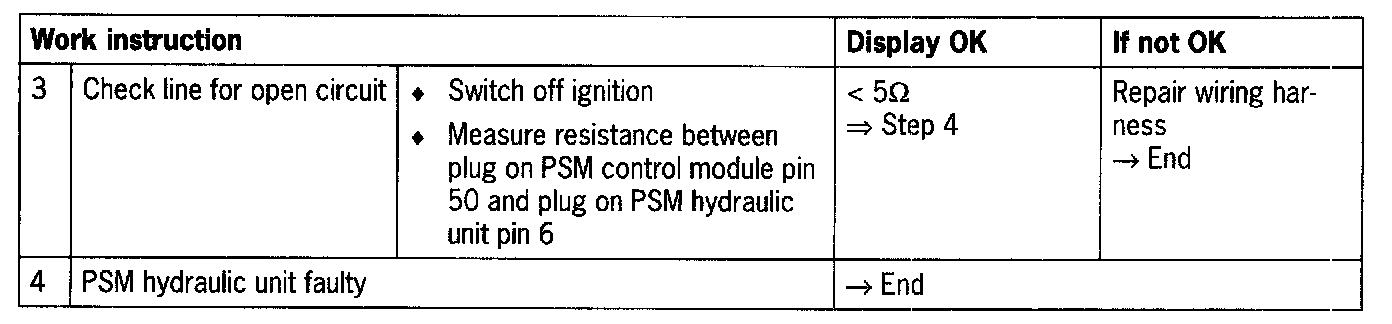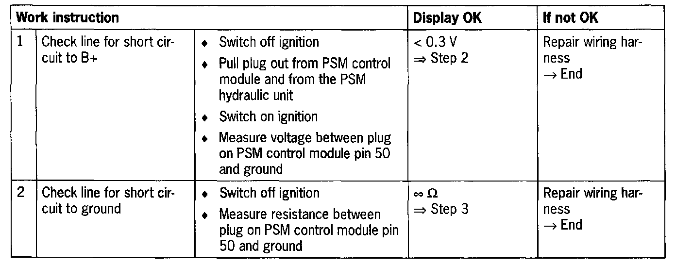 - PSM 5.3 Short circuit to ground/B+ or open circuit in circuit to control module terminals 50