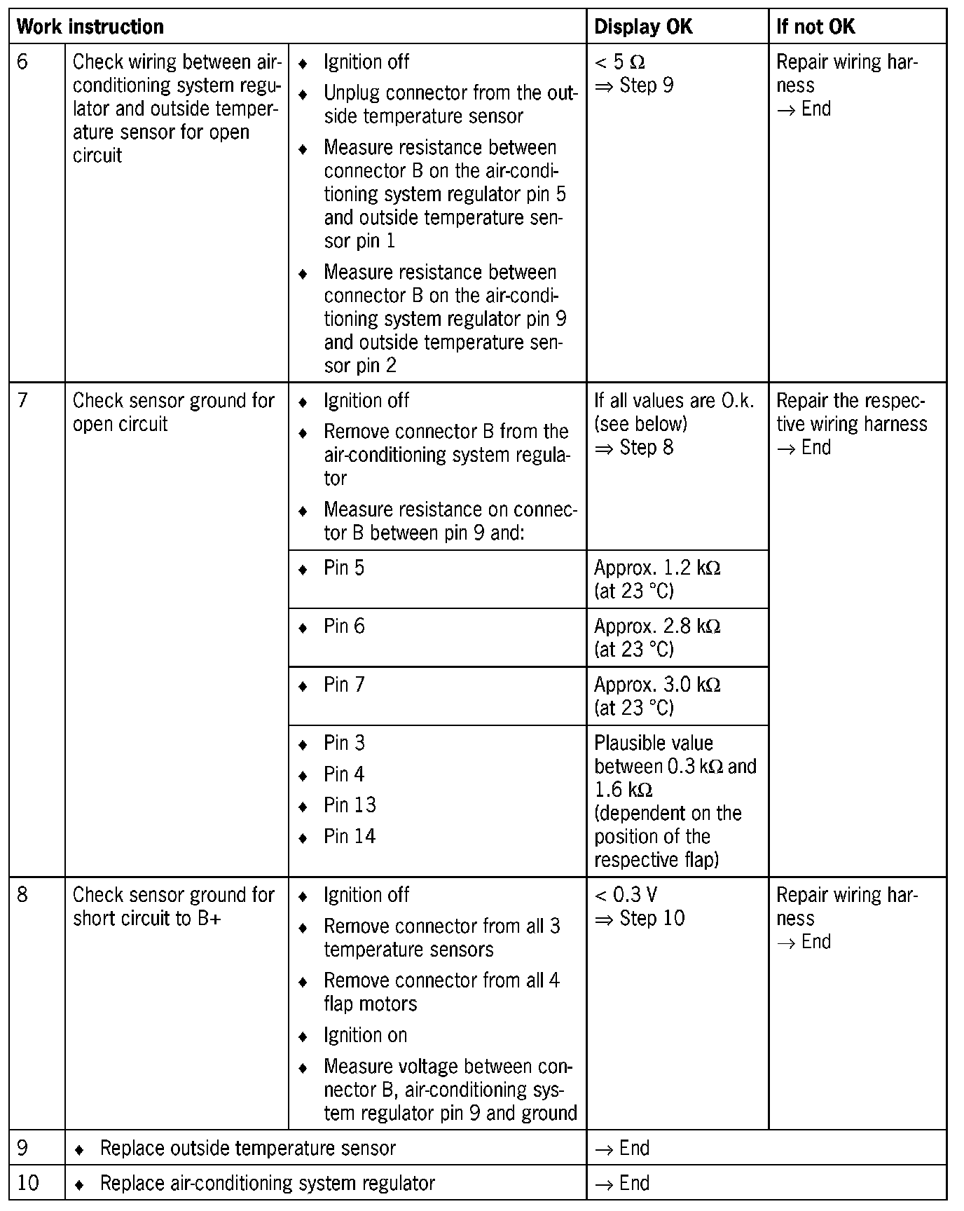 - Short circuit to B+/ground/between one another or open circuit in the wiring between the air-conditioning system regulator and outside temperature sensor
