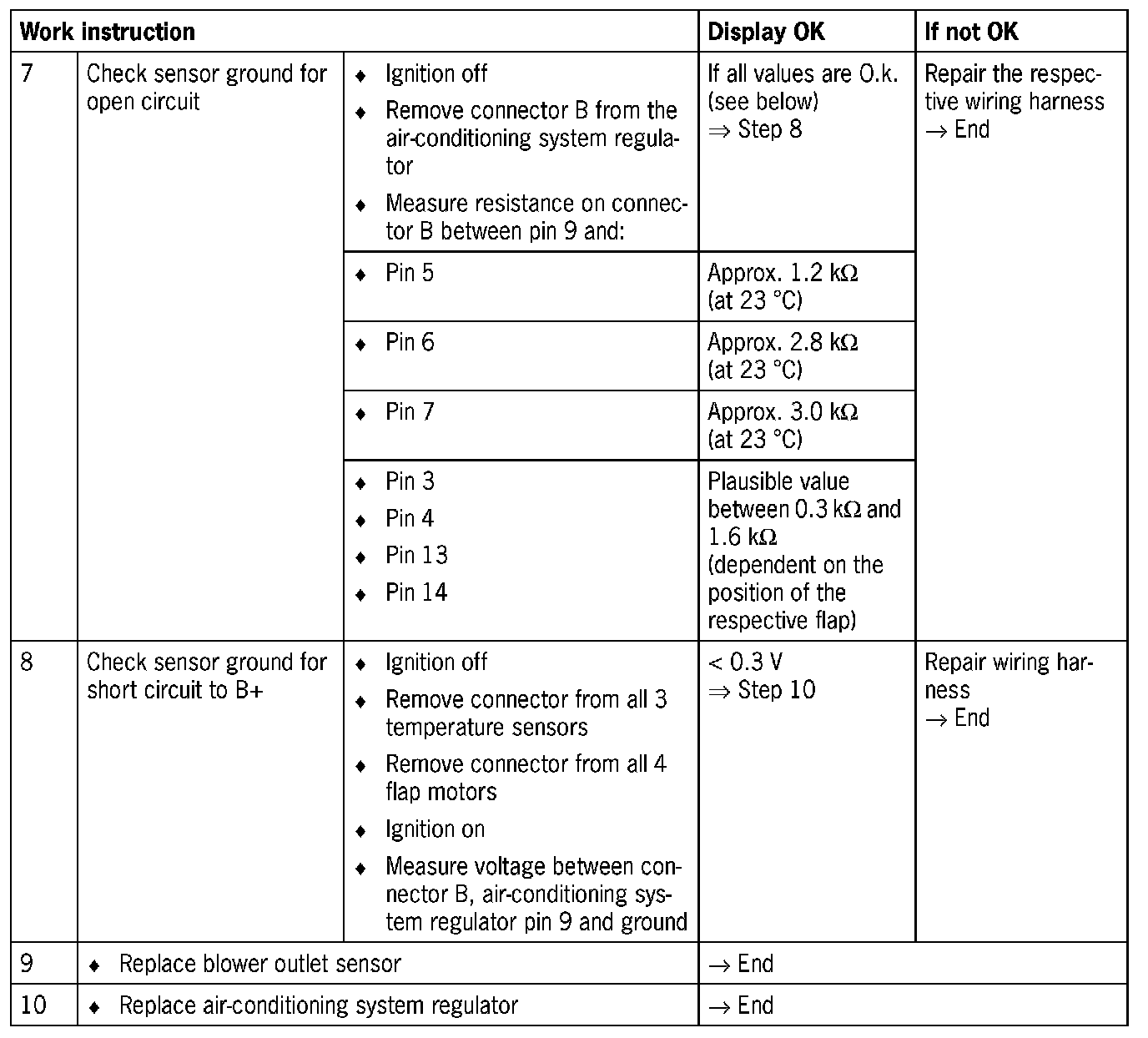 - Short circuit to B+/ground / between one another or open circuit in the wiring between the air-conditioning system regulator and the footwell blower outlet sensor