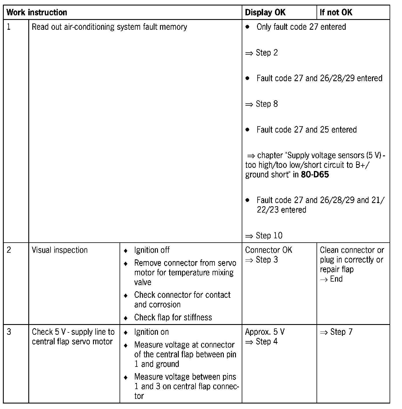 Fault code 27Central flap motor - No reaction to activation, signal unclear