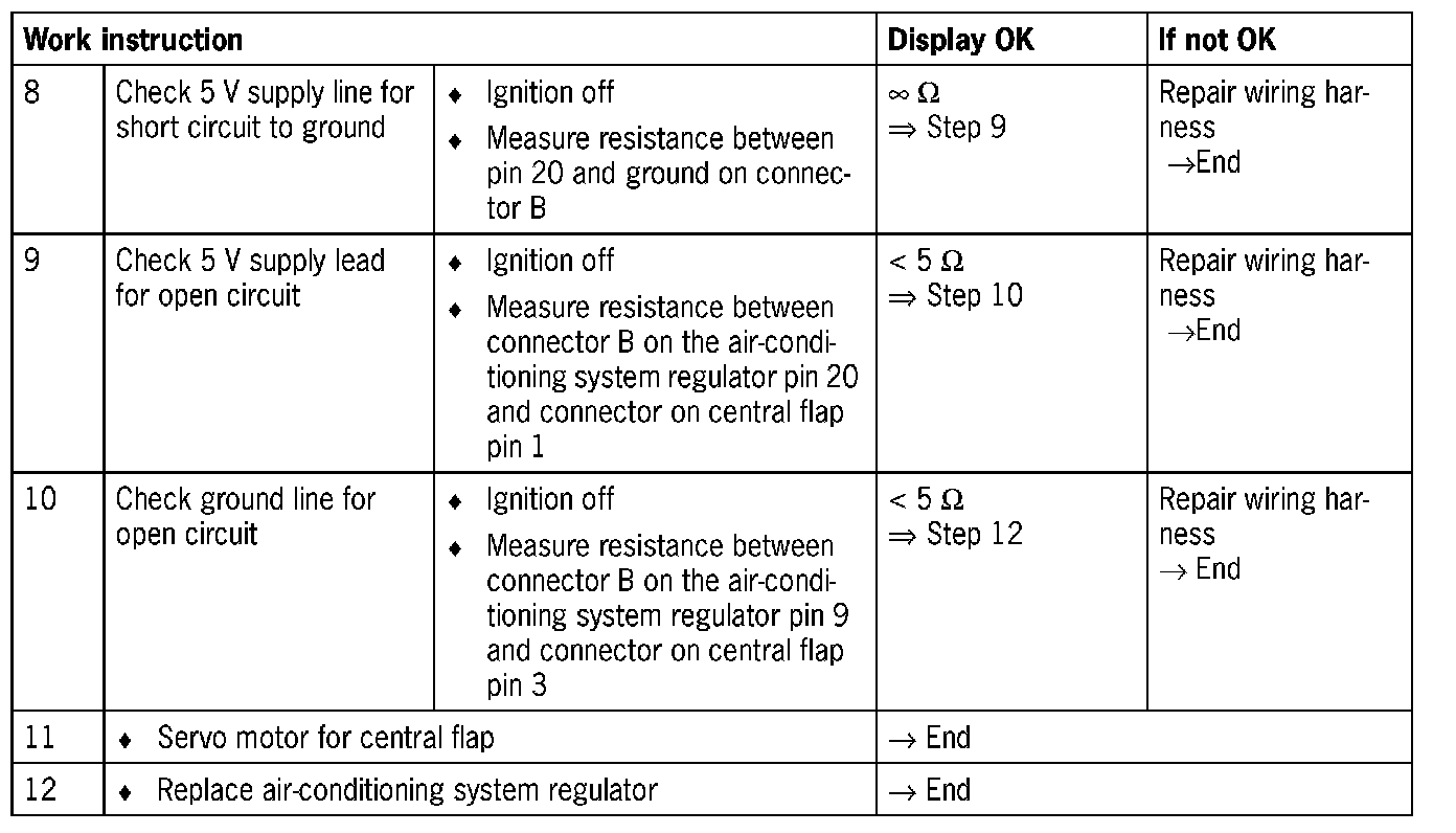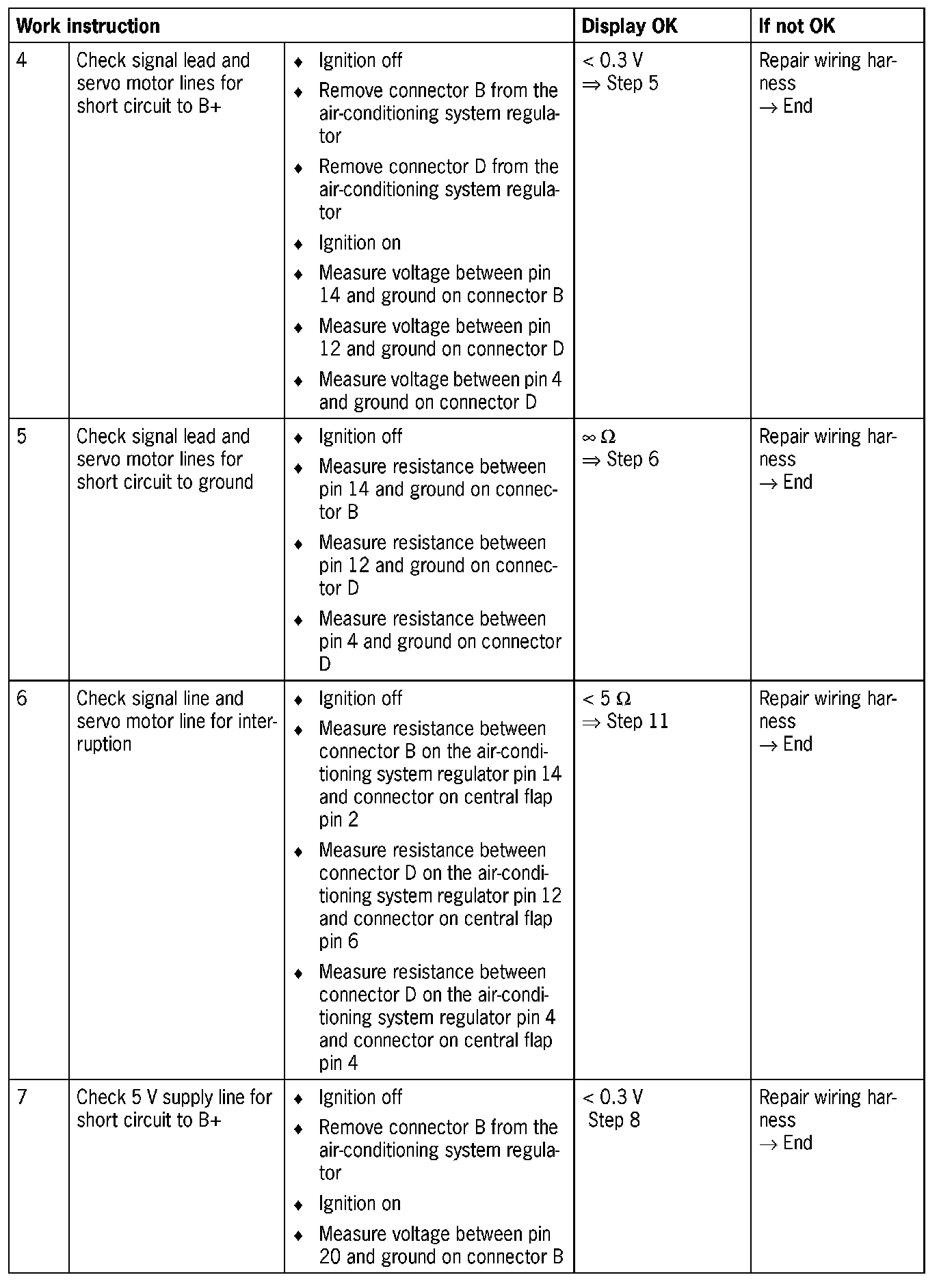 - Short circuit to B+/ground/between one another or open circuit in the wiring between the air-conditioning system regulator and the central flap.