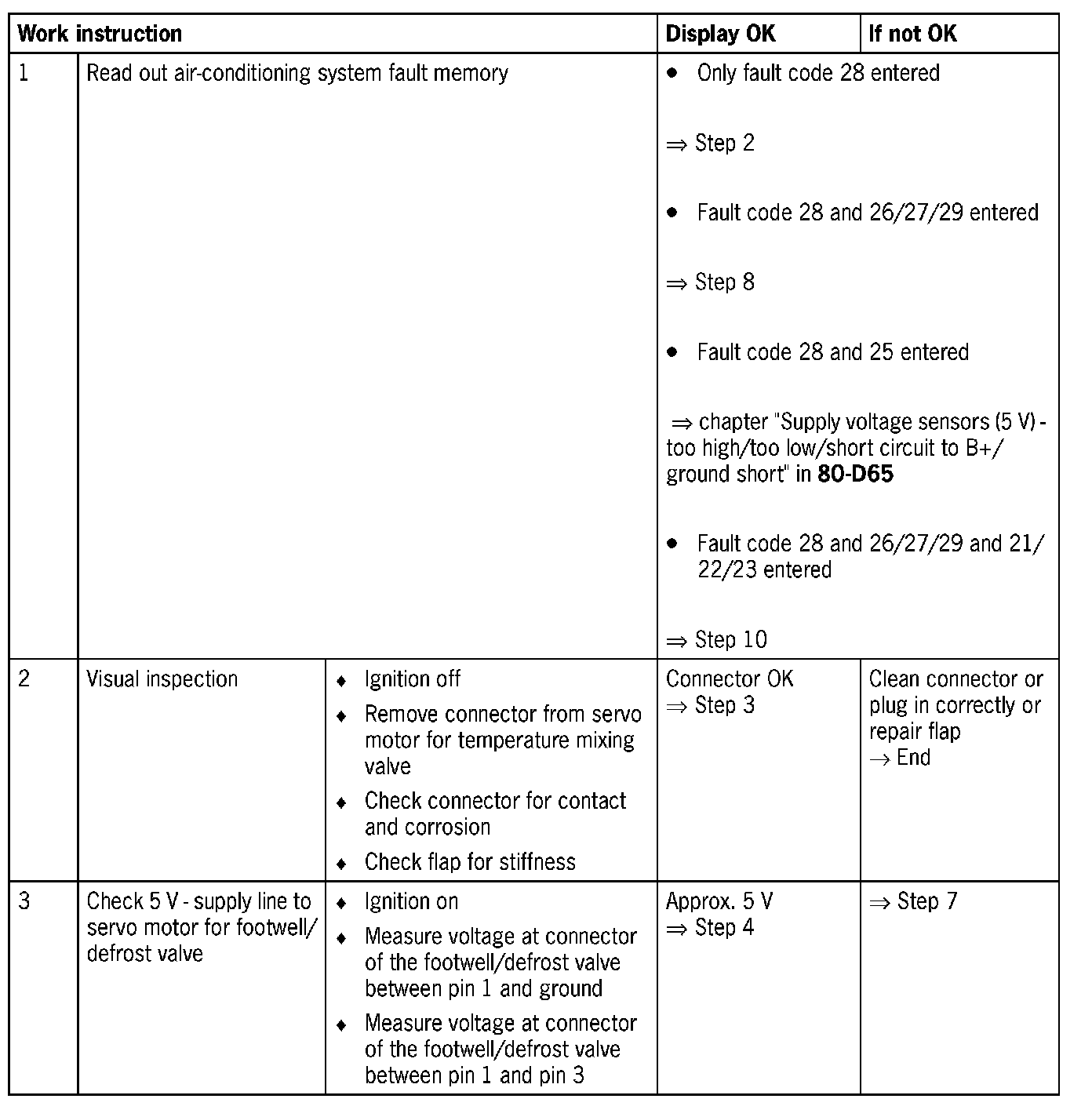 Fault code 28Footwell/defrost valve motor - No reaction to activation, signal unclear