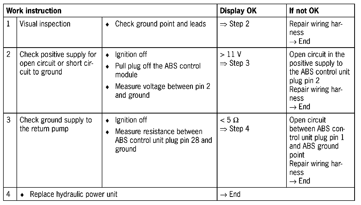 - Short circuit or open circuit in the positive/ground supply to the hydraulic power unit