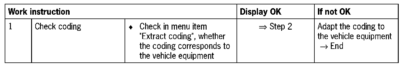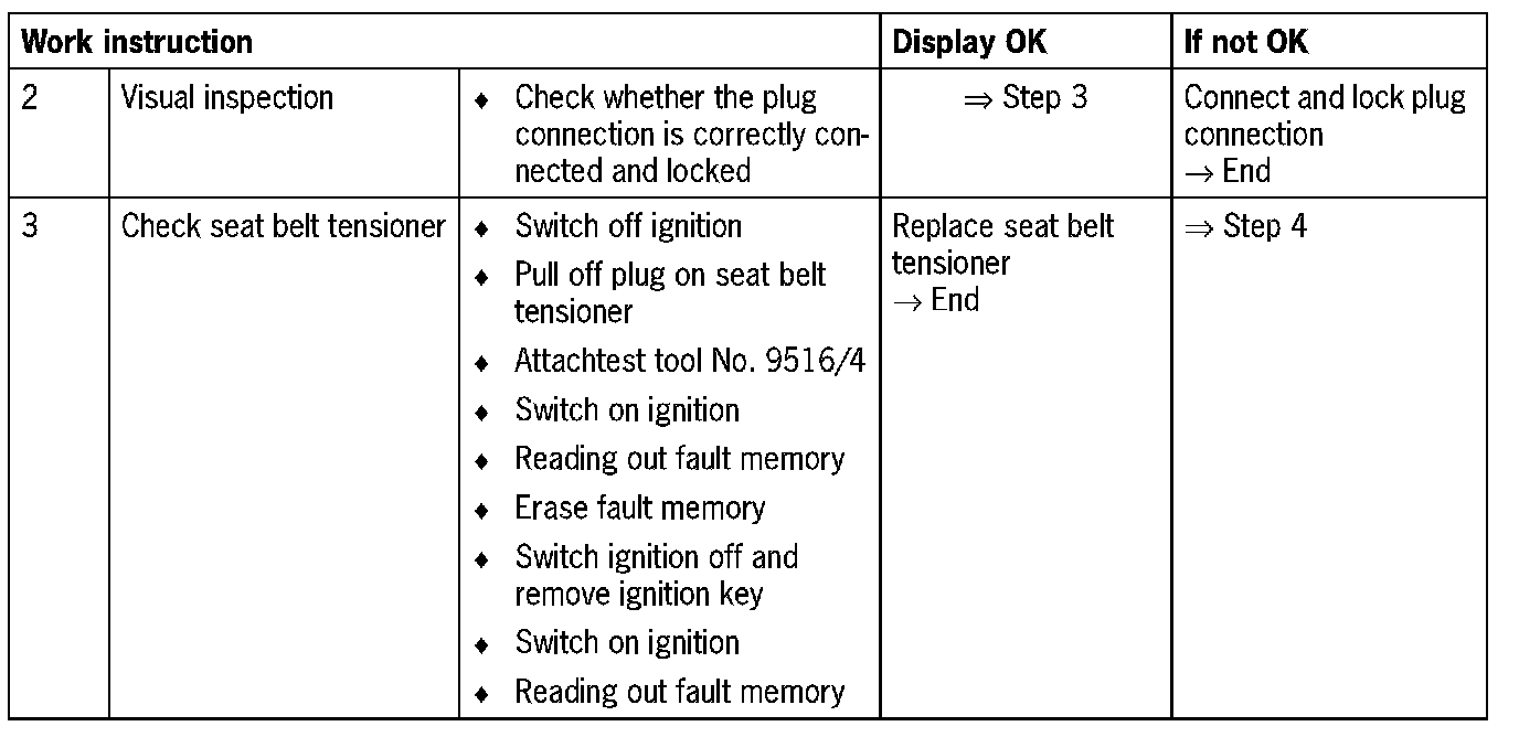 NOTE: If the fault memory is cleared, the ignition must be switched off, the ignition key removed and the ignition switched on again in order to check the fault path. Only in this way is another self-test carried out.
