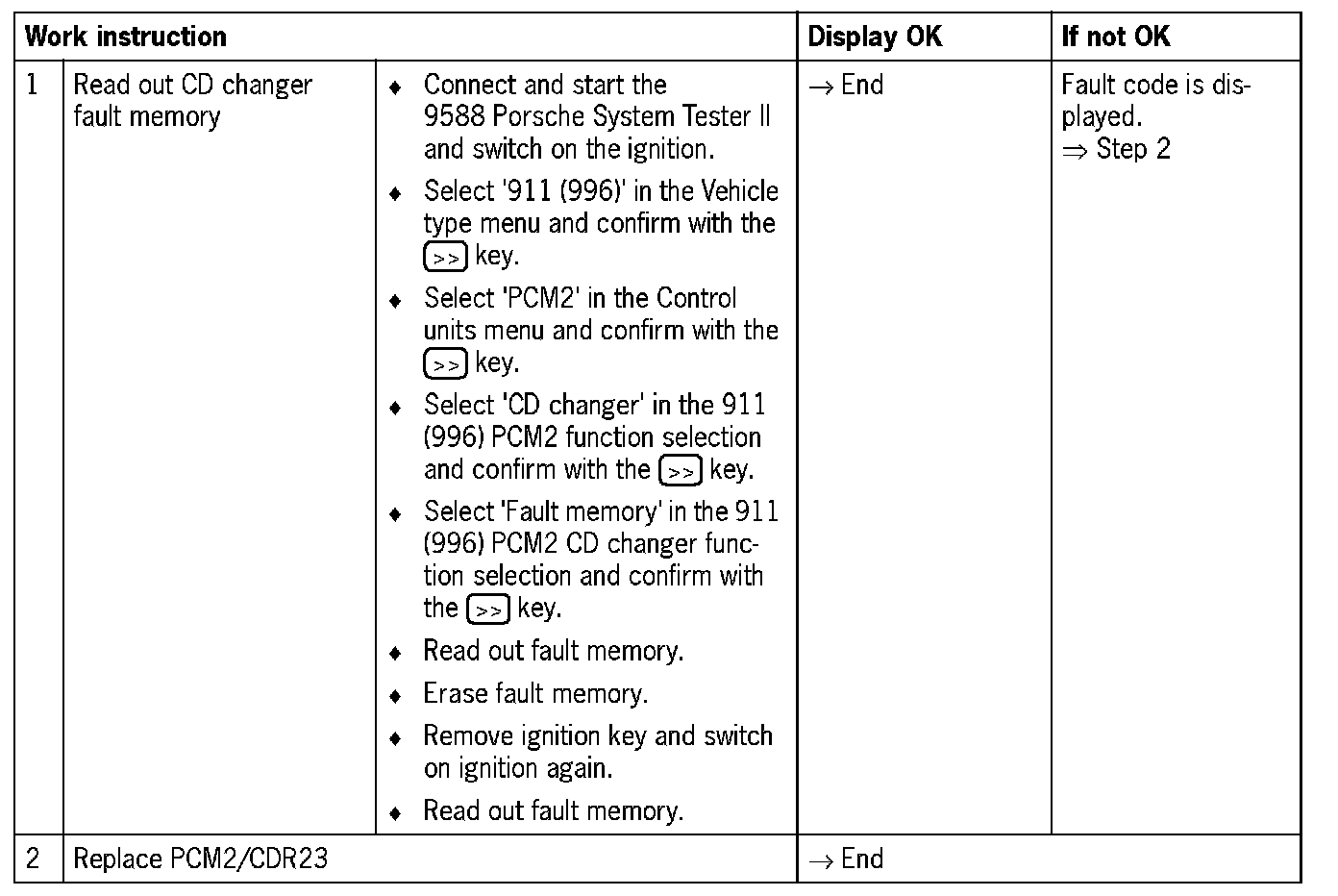 - Fault code 8003 is recorded in the PCM2 MMI if the operating buttons are actuated for '≥ 1 minute'.