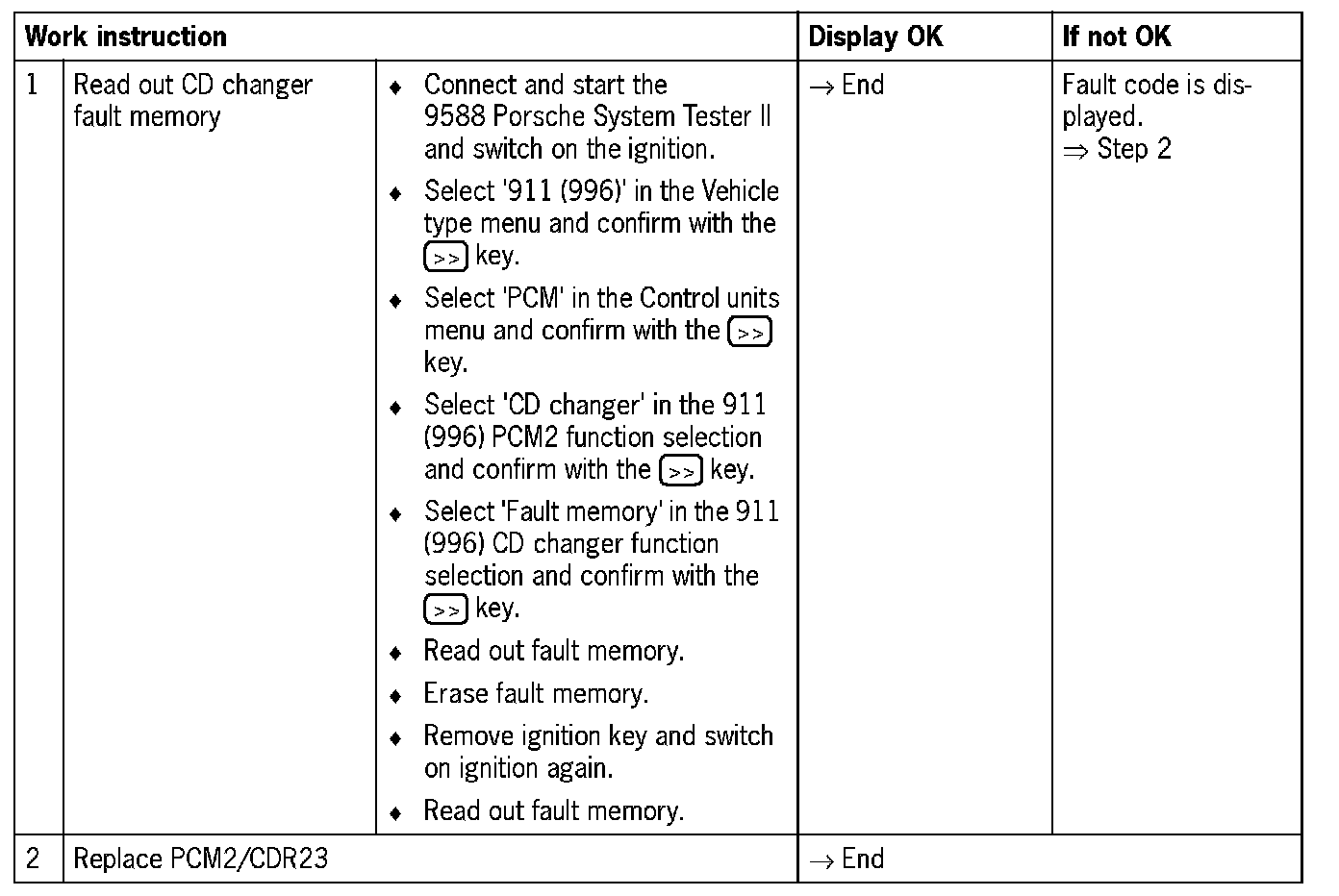 - Deactivate the 'automatic traffic announcement' before performing the diagnosis on the PCM2/CDR23. If this is not done, the diagnosis will abort (applies only to software version < 03).