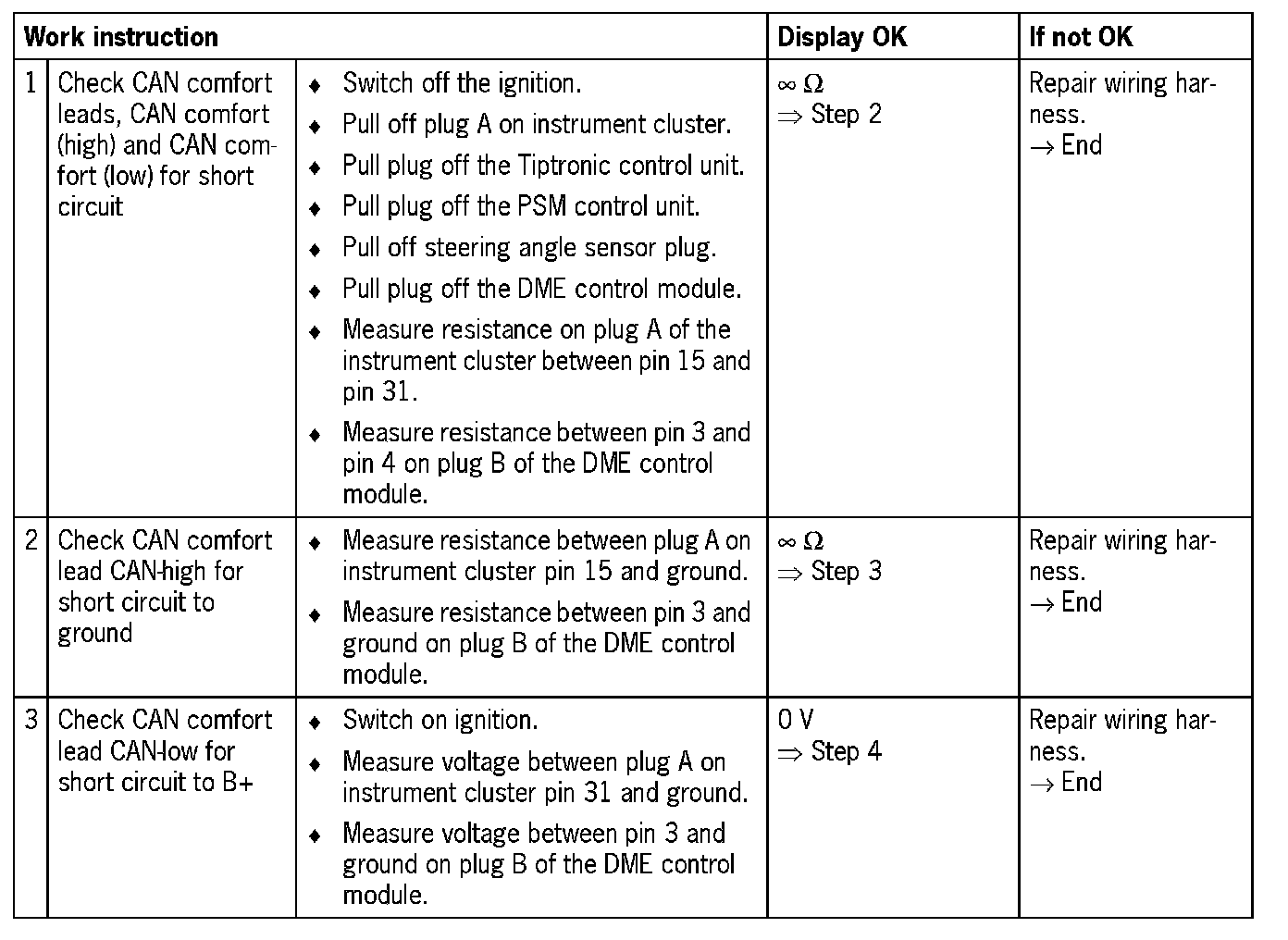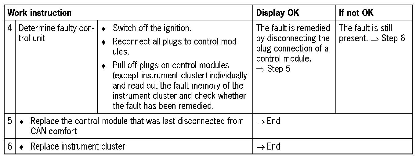 - Short circuit between the two CAN comfort leads (CAN-high and CAN-low)