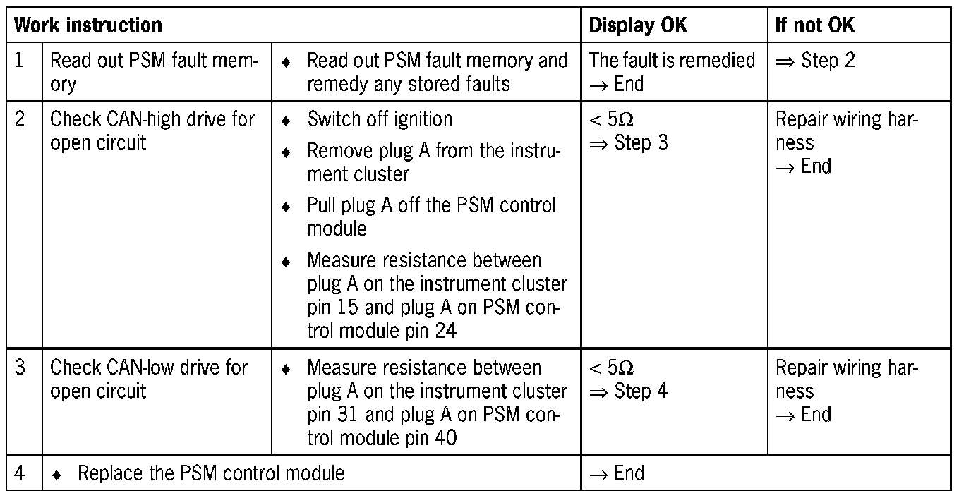 - Due to a faulty component, the PSM system has switched off or PSM control module is faulty