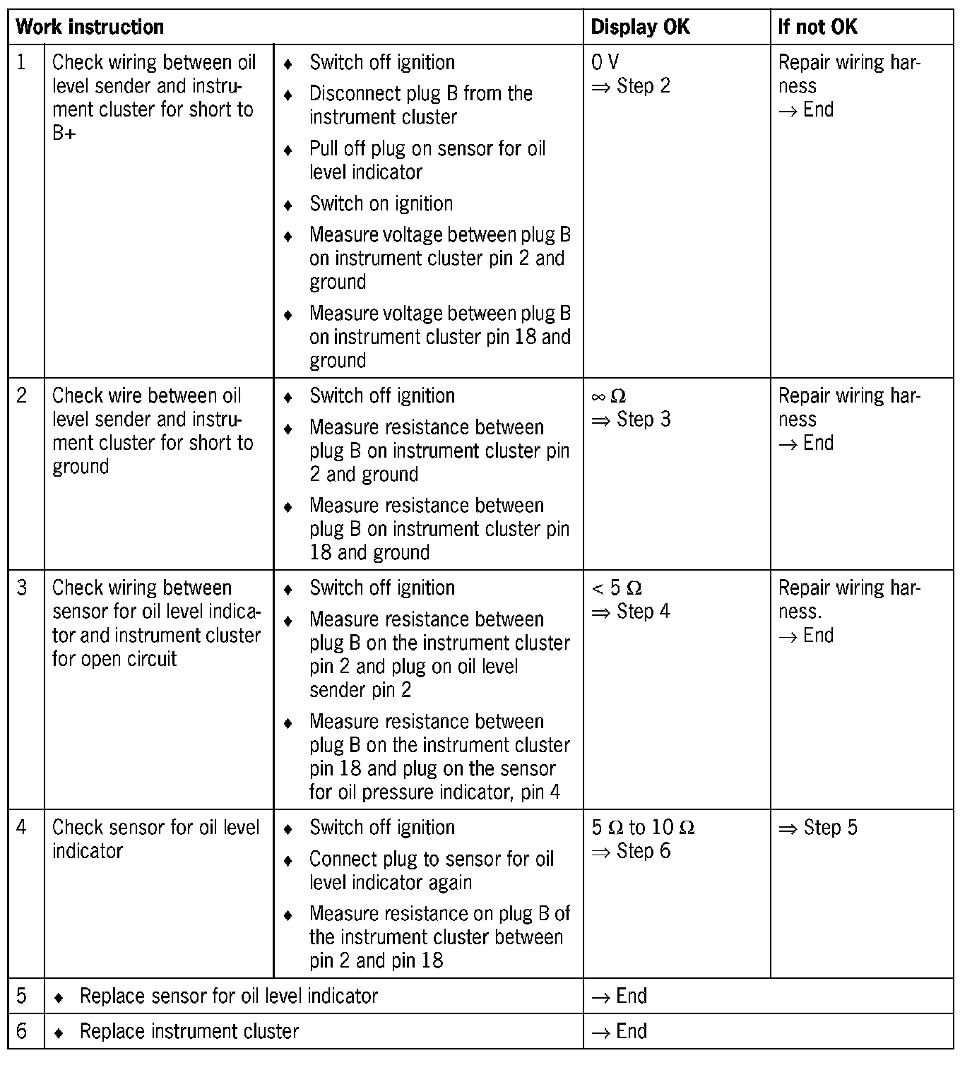 - Short circuit to ground/voltage or open circuit in the wiring between the oil level sender and instrument cluster