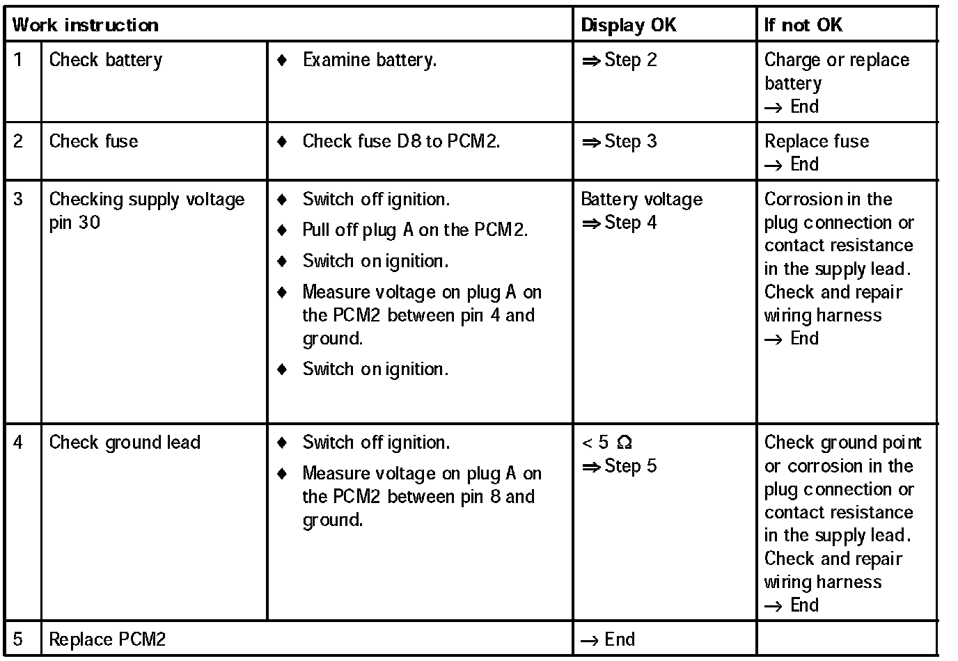 NOTE: The fault memory status (present/not present) is always updated when the engine is started.