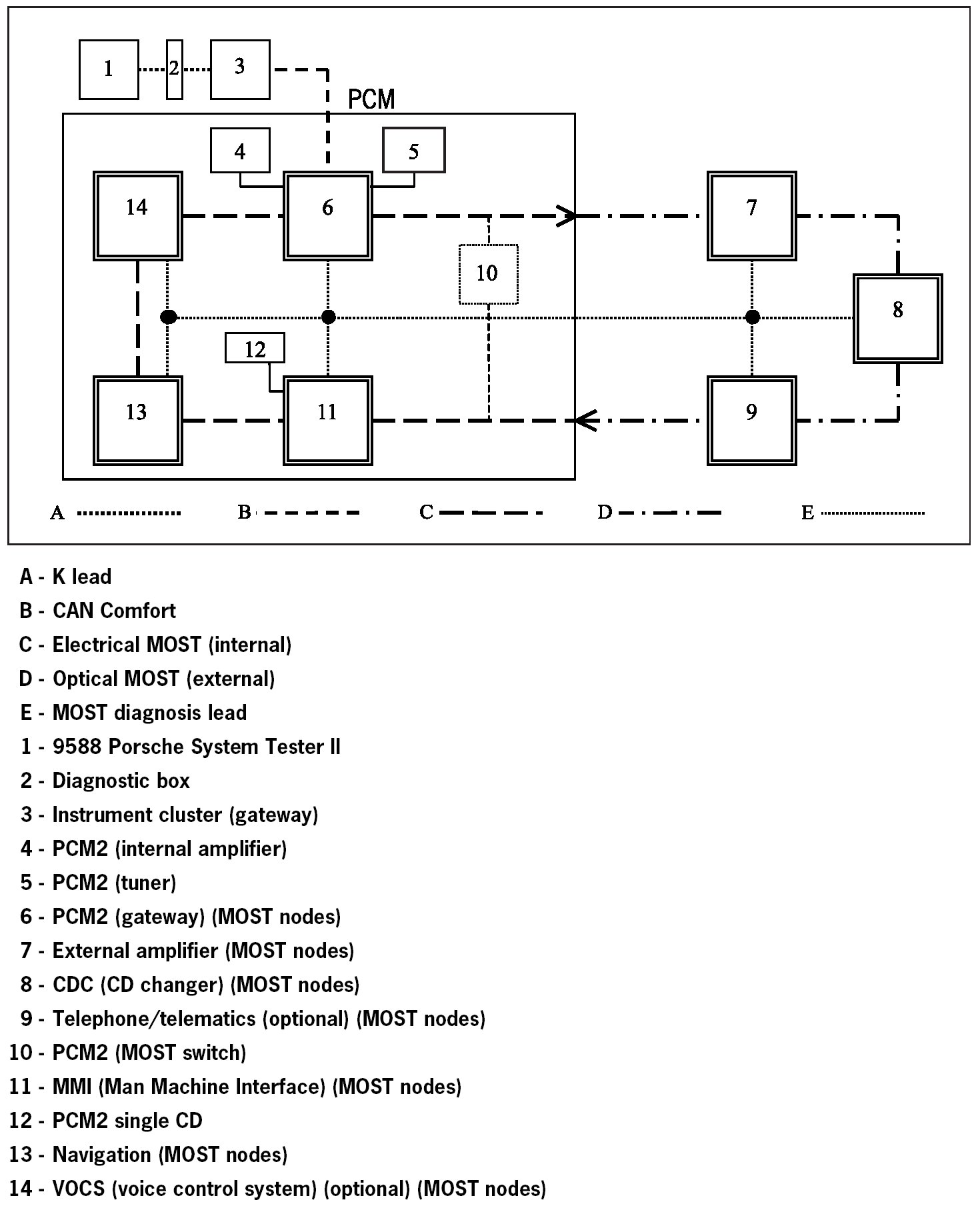 - An optically/electrically faulty MOST control module is connected to the MOST.