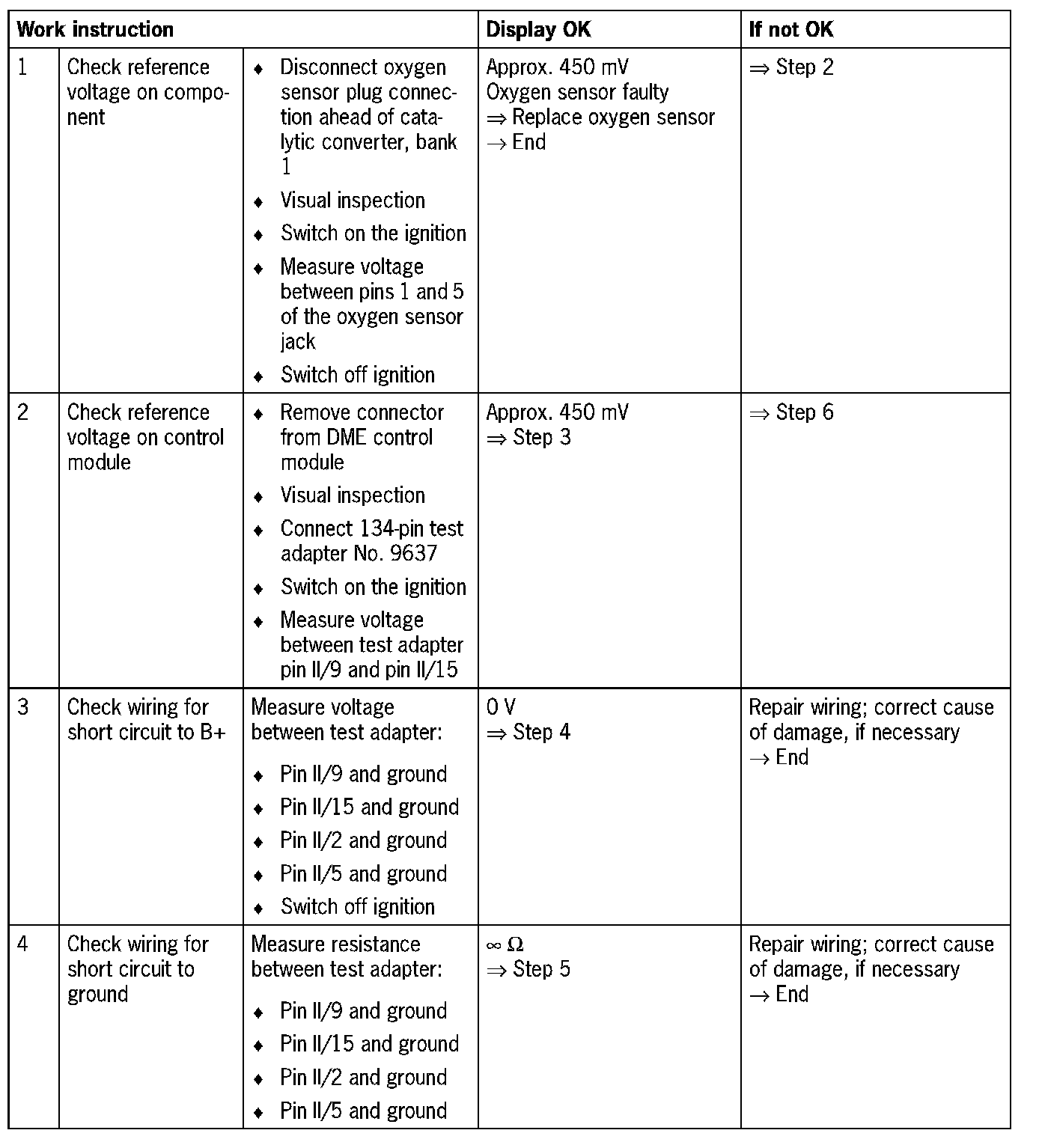 DME control module connector II, pin 15 and oxygen sensor jack, bank 1, pin 4