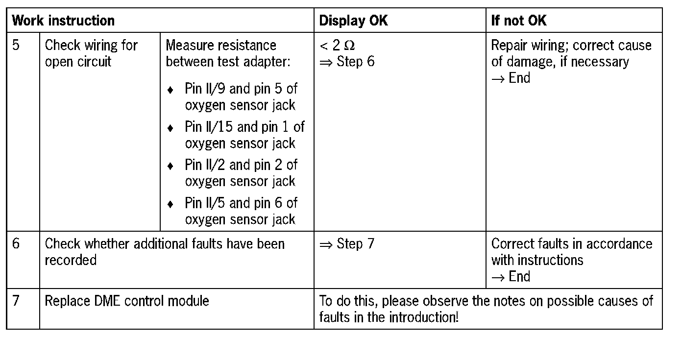 DME control module connector II, pin 9 and oxygen sensor jack, bank 1, pin 5