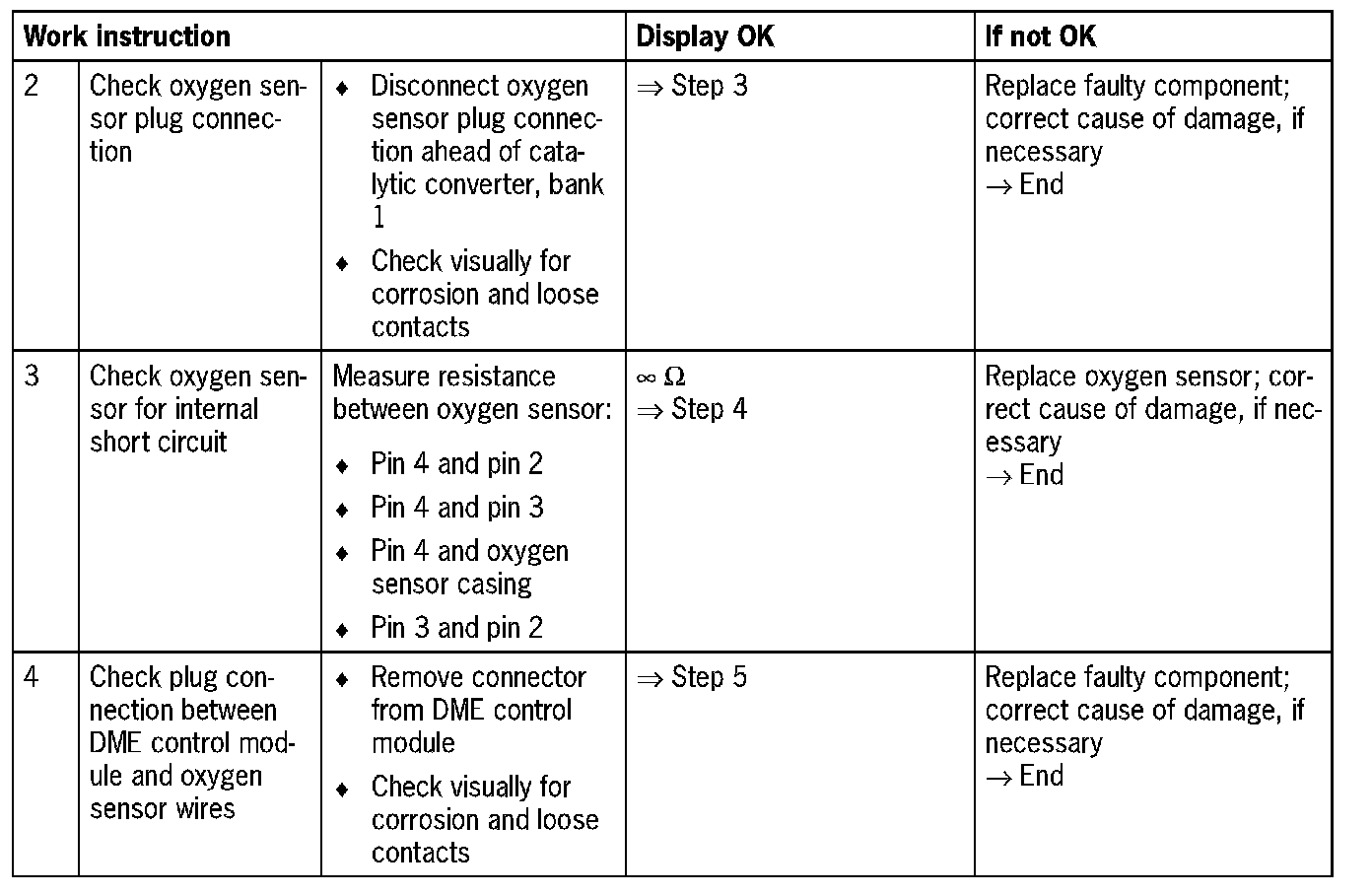 NOTE: Do not use contact spray on the oxygen sensor plug connections as this may cause irreparable damage to the wiring (contamination of the oxygen sensor via the reference air channel).