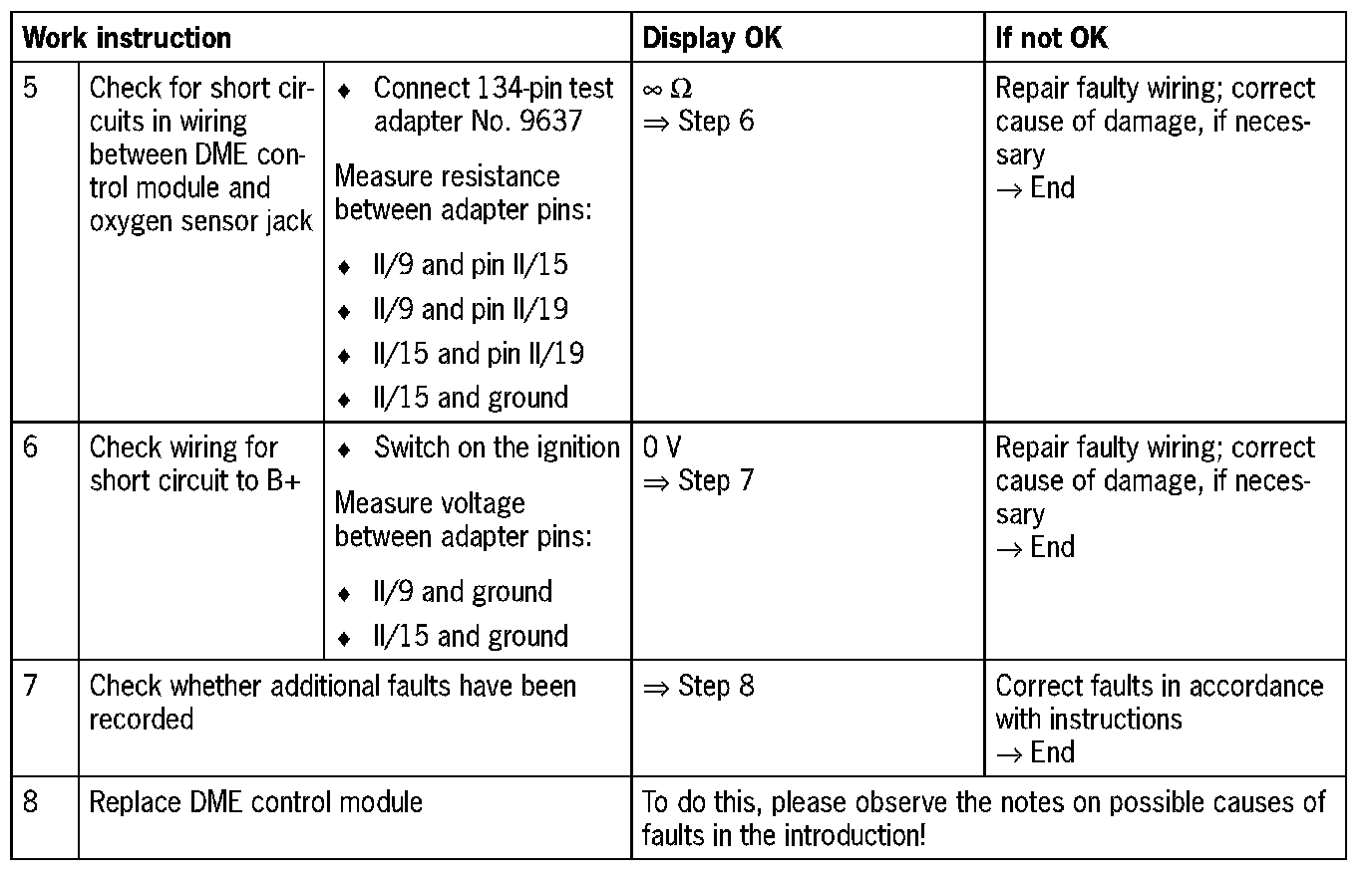 DME control module connector II, pin 2 and pin 5