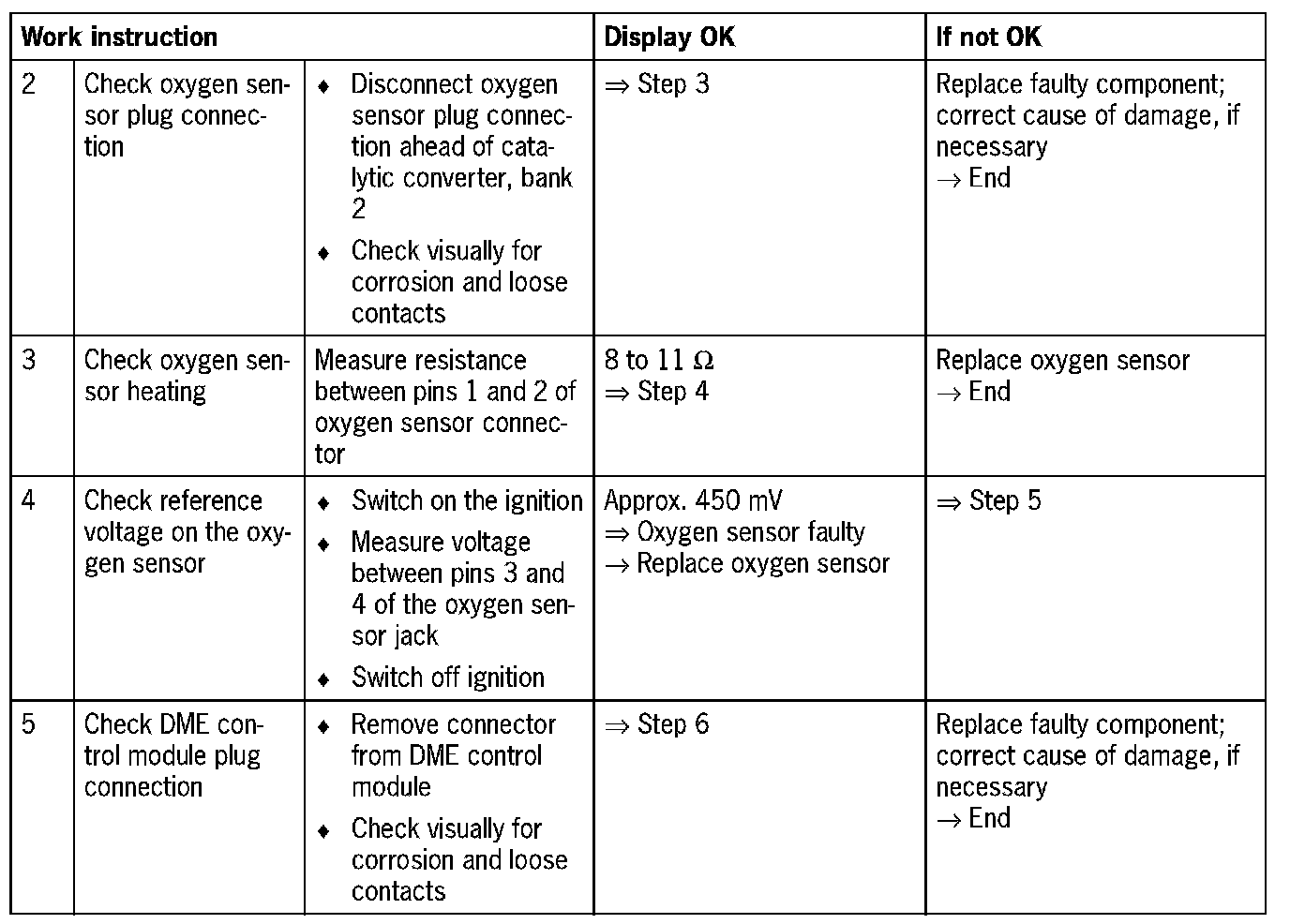 - Oxygen sensor faulty (heater coupling or heating)