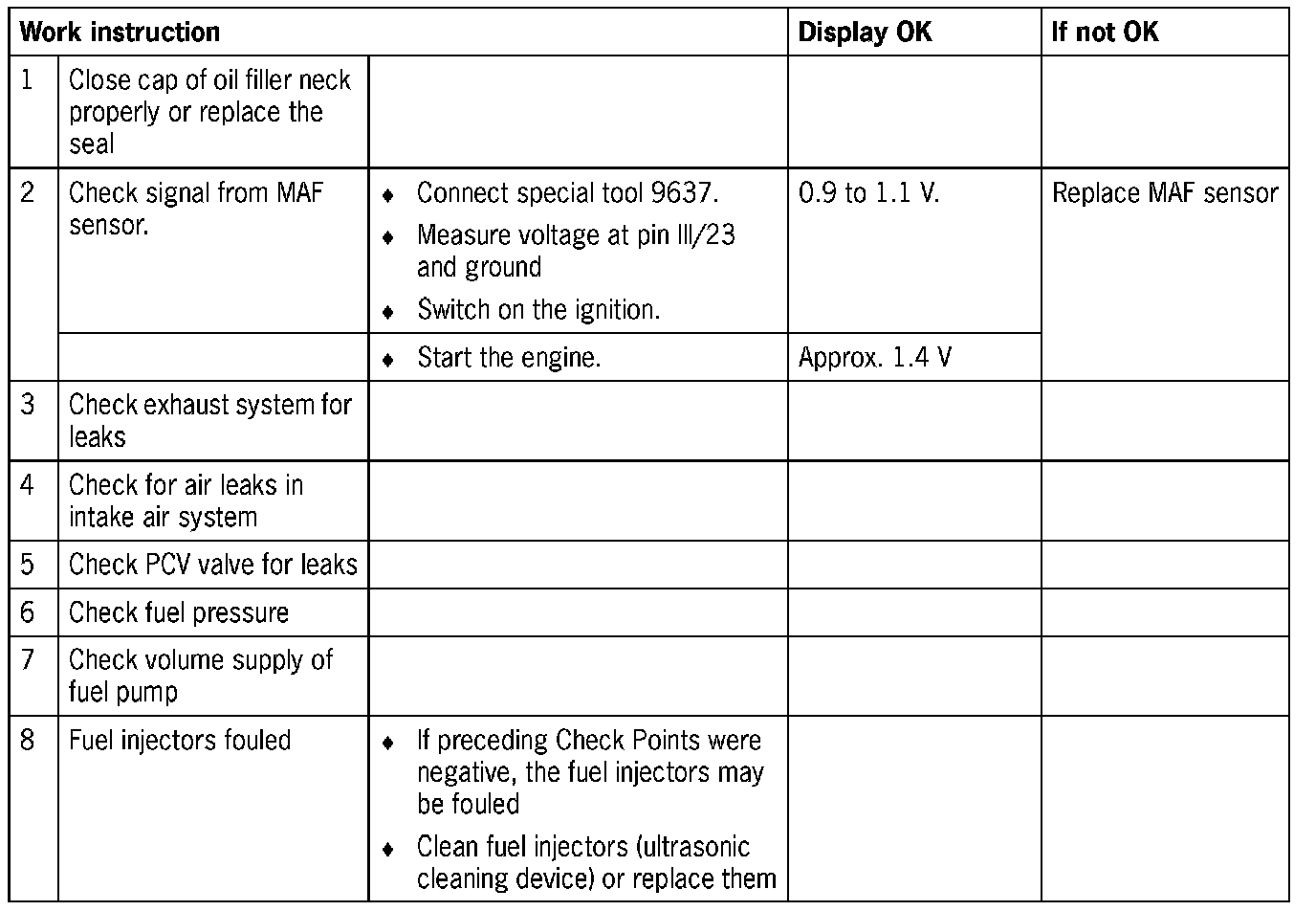 - Incorrect signal from MAF sensor