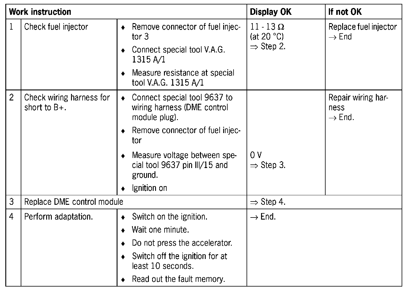 NOTE: Short to B+ causes the fuel injector to be continually closed.