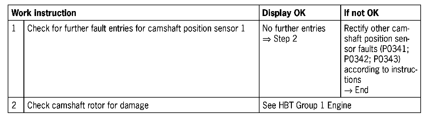 - No other camshaft position sensor faults stored in memory (P0341; P0342; P0343)