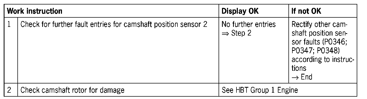 - No other camshaft position sensor faults stored in memory (P0346; P0347; P0348)