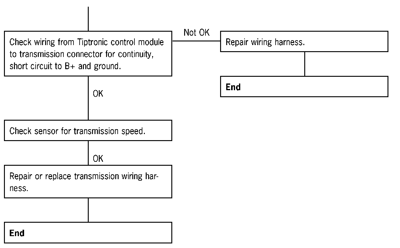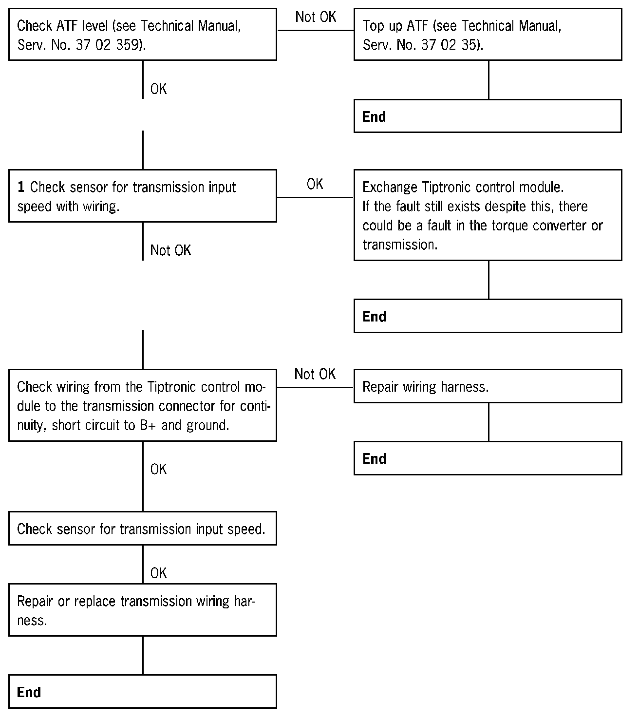 NOTE: If the faults described in the diagnosis procedure were remedied and no other faults are stored, there could be a fault in the torque converter or in the transmission.