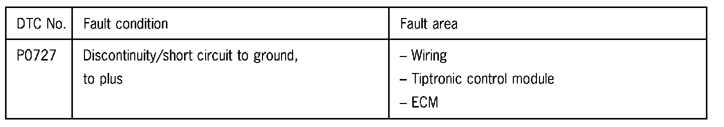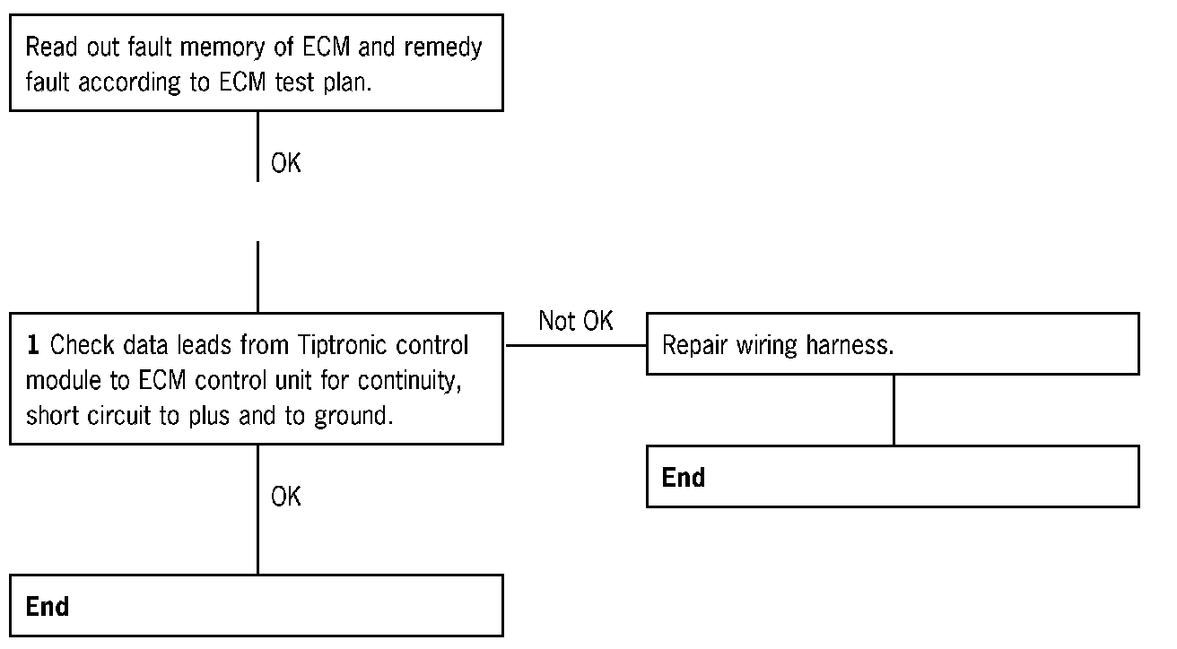 1 Check data lead from Tiptronic control module to ECM control unit for short circuit to ground.