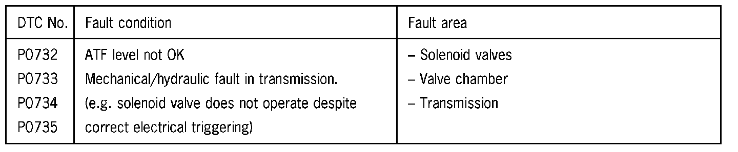 The ratio between transmission input speed and output speed is monitored when monitoring the 2nd to 5th gears, taking into account the gear selected in each case. In the case of deviations from setpoint values, the Tiptronic control module detects whether shifting was performed mechanically/hydraulically.