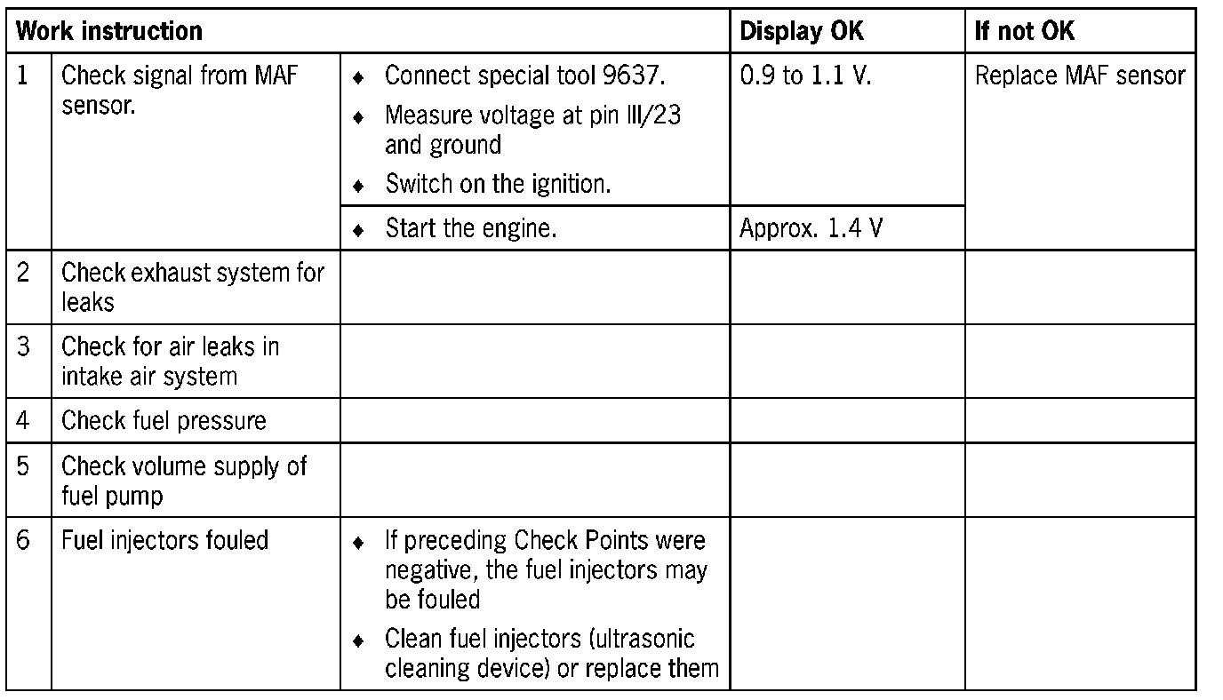 NOTE: Air leaks ahead of the oxygen sensors can lead to a fault in adaptation --> Check exhaust system for leaks.