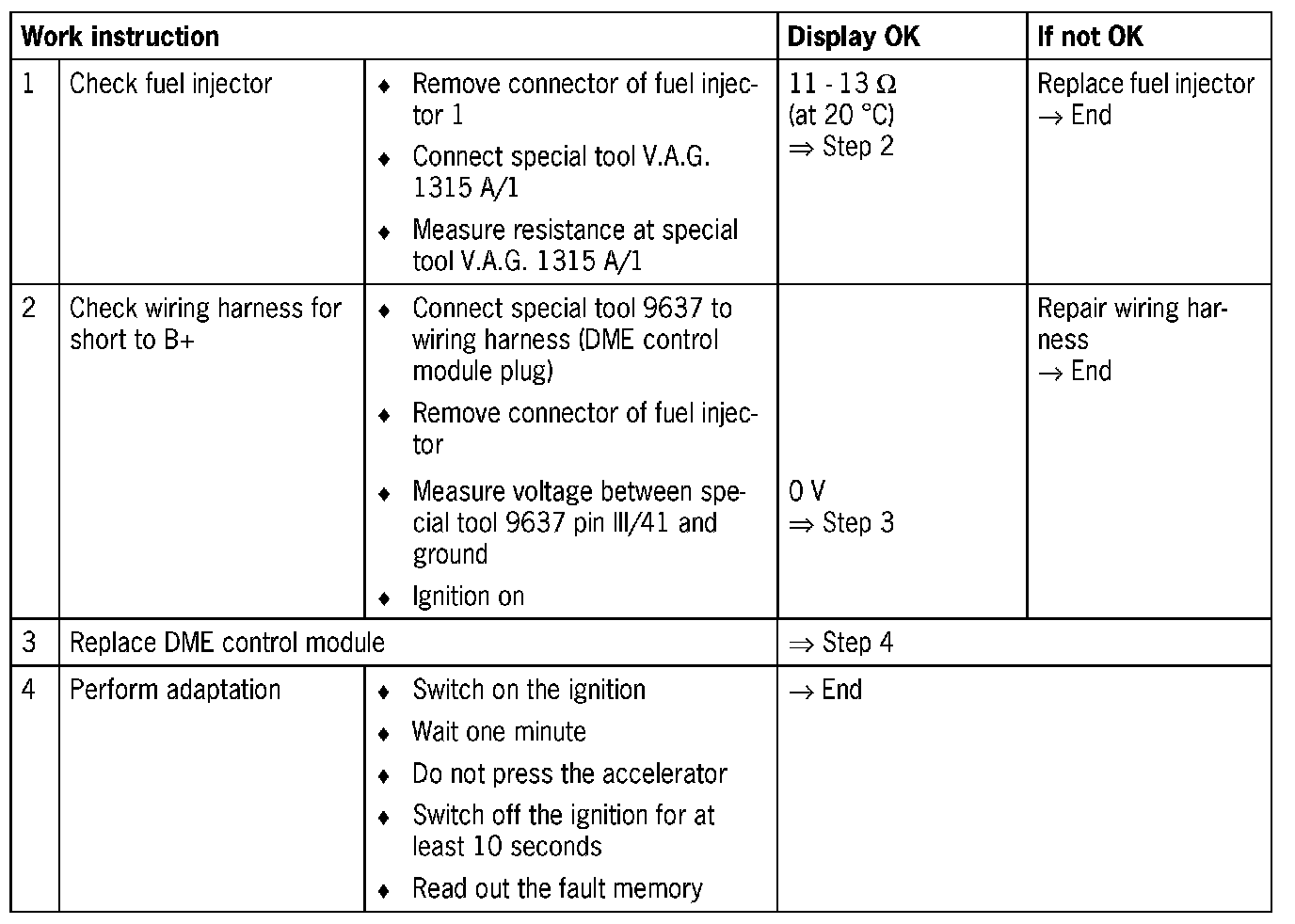 NOTE: Short to B+ causes the fuel injector to be continually closed.