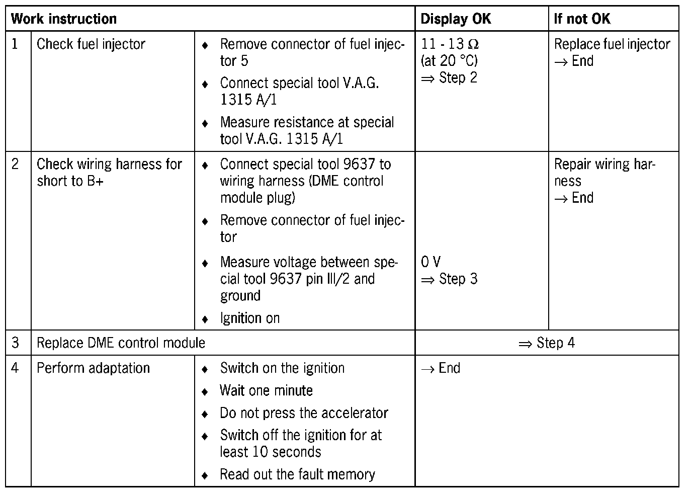 NOTE: Short to B+ causes the fuel injector to be continually closed.