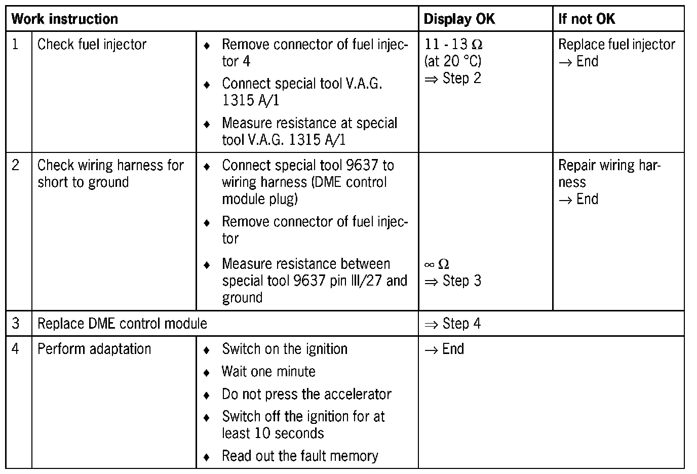 NOTE: Short to ground causes the fuel injector to be permanently open.