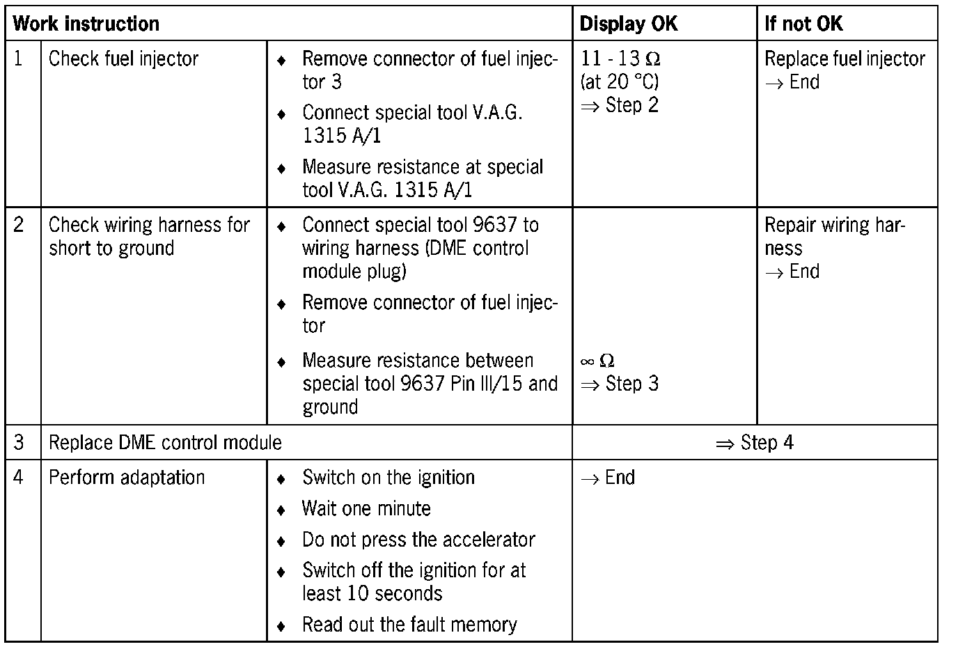 NOTE: Short to ground causes the fuel injector to be permanently open.
