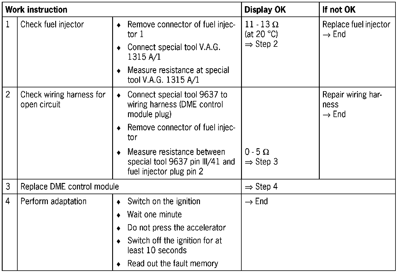 - Fuel injector (coil) open circuit