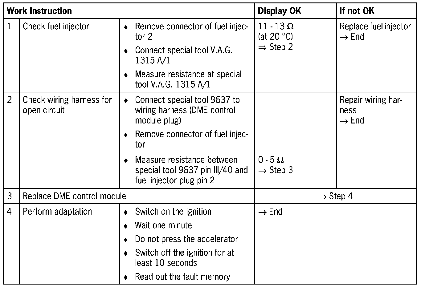 - Fuel injector (coil) open circuit
