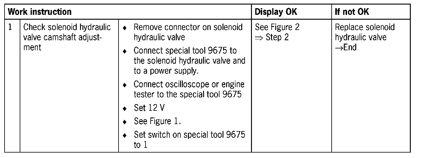 NOTE: Solenoid hydraulic valve is not triggered, camshaft does not switch into late position