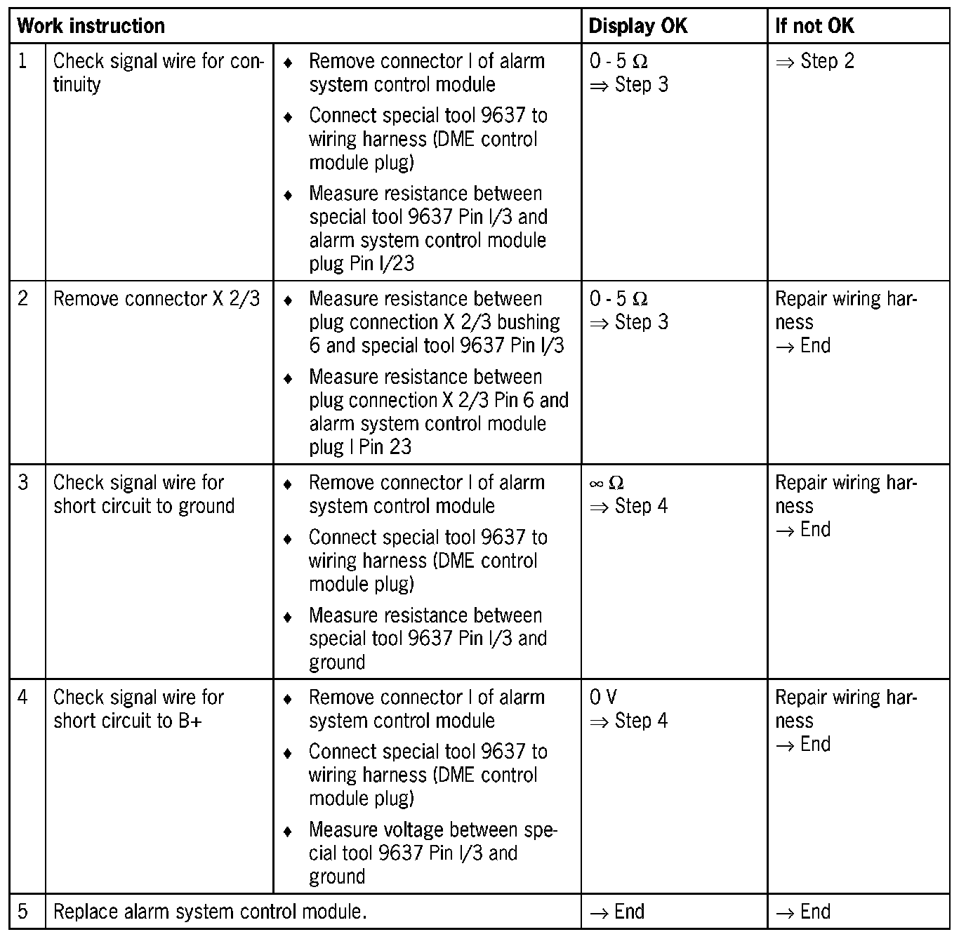 - Open circuit in wiring between DME control module and alarm system