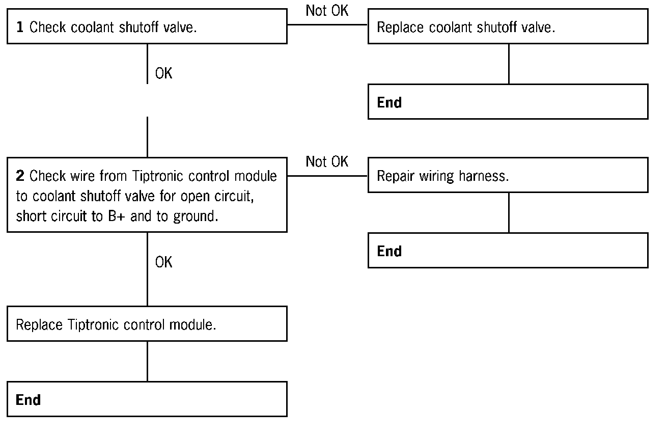 2 Check wiring from Tiptronic control module to coolant shutoff valve for short circuit to ground.