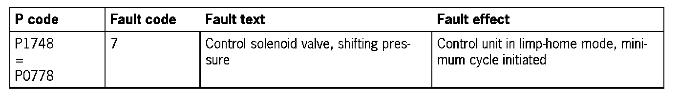 NOTE: This fault code "P1748" is only output by the DME of the 911 (996) Turbo of model year 2001. In the extended fault memory of the Tiptronic control unit, the currently valid P code "P0778" is generated by the 9588 Porsche System Tester II.