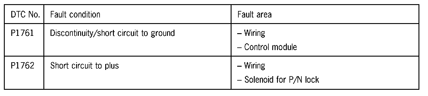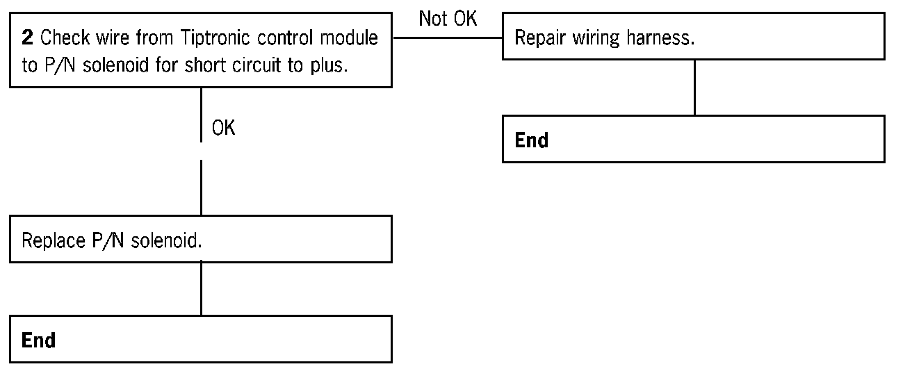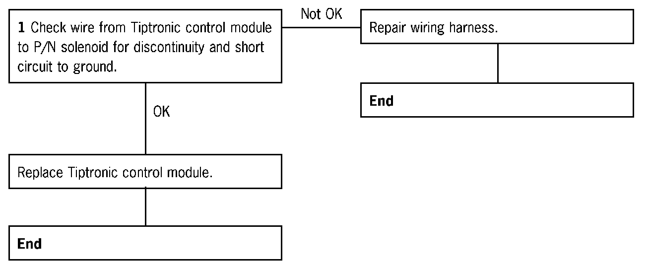 1 Check wire from Tiptronic control module to P/N solenoid for short circuit to plus.