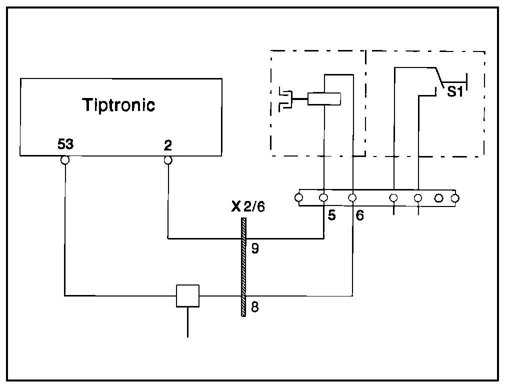 The multi-function switch detects the position "P" or "N" and signals this to the Tiptronic control module. However, the control module does not cause the solenoid to release the selector lever until a signal from the brake-light switch has arrived.