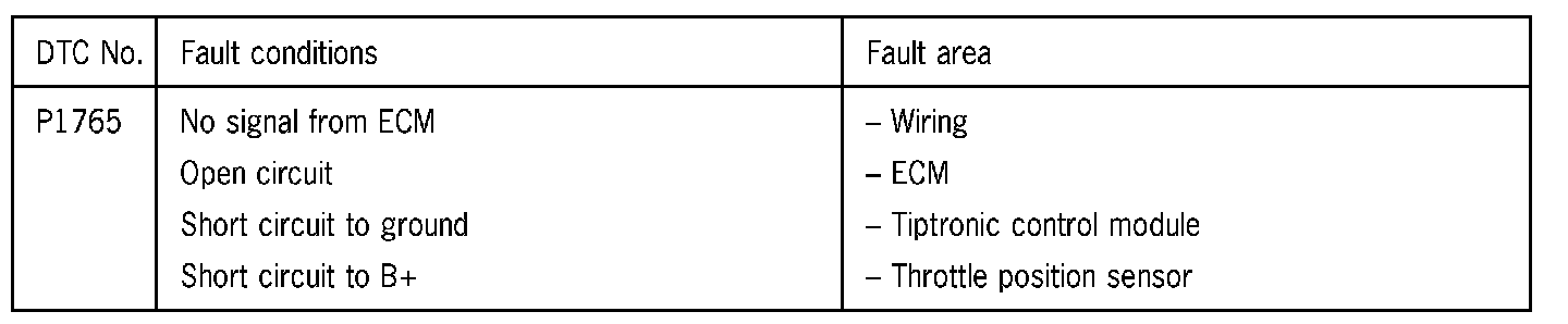 The ECM signals a fault directly to the Tiptronic control module via a data lead (CAN bus).