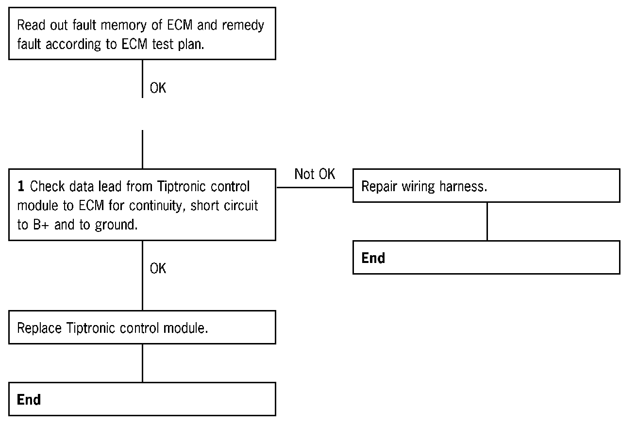 1 Check data lead from Tiptronic control module to ECM for short circuit to B+.