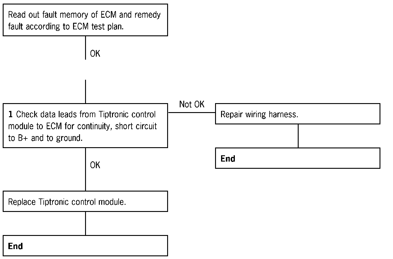 1 Check data leads from Tiptronic control module to ECM for short circuit to ground.