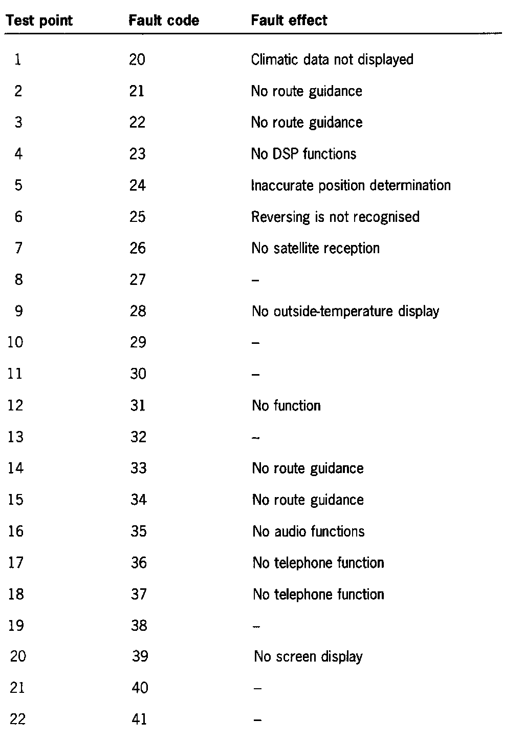 Test Points, Fault Codes